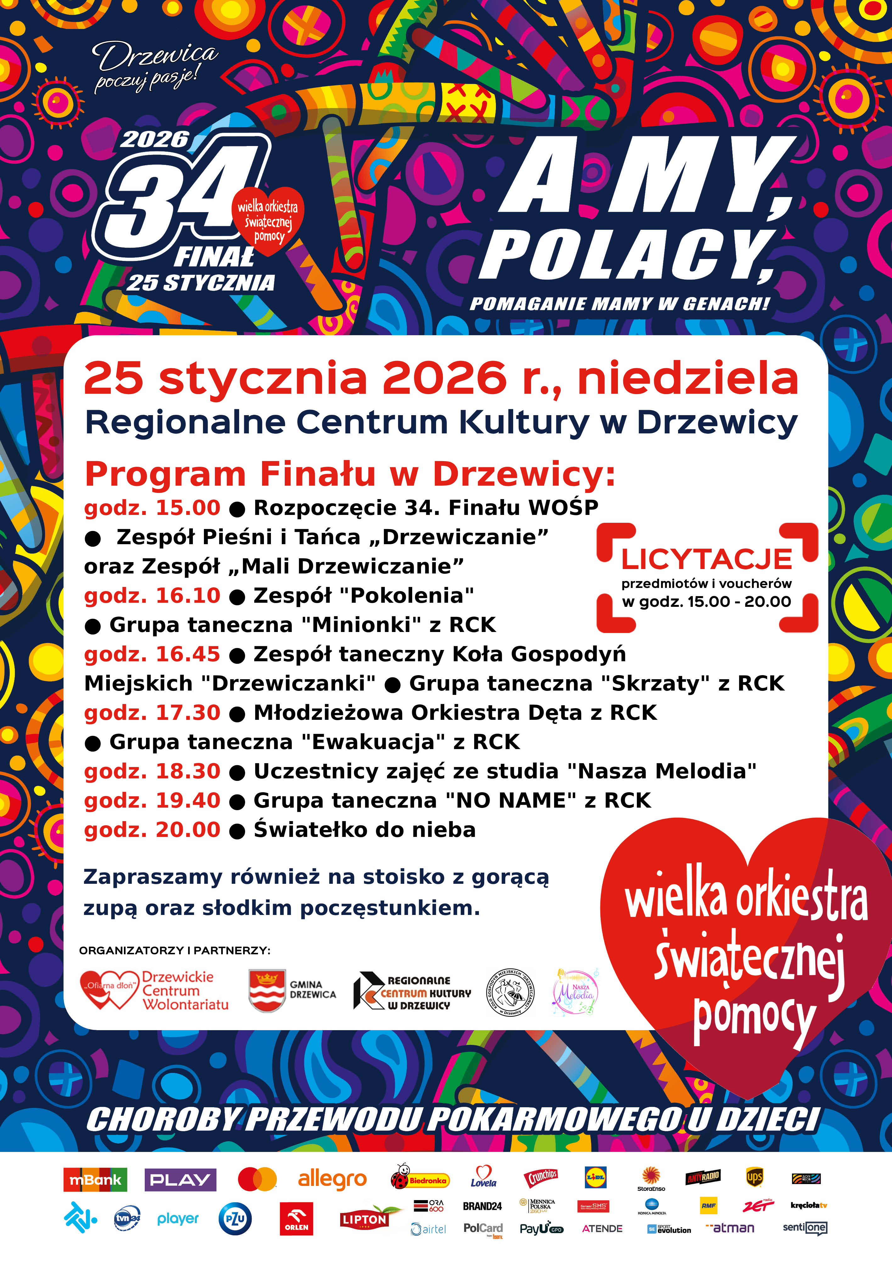 Program 34. Finału WOŚP w Drzewicy (25 stycznia 2026 r.):