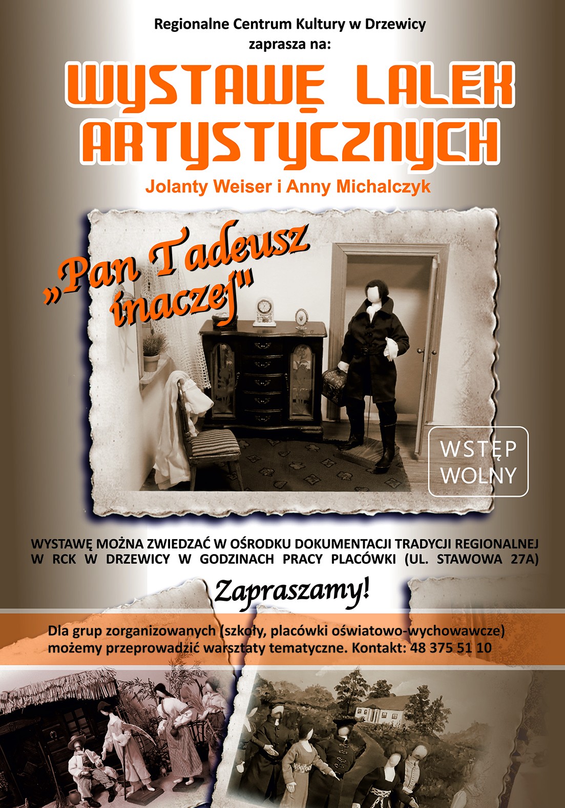 Regionalne Centrum Kultury w Drzewicy zaprasza na wystawę lalek artystycznych Jolanty Weiser i Anny Michalczyk pt. „Pan Tadeusz inaczej”, inspirowaną dziełem Adama Mickiewicza "Pan Tadeusz"